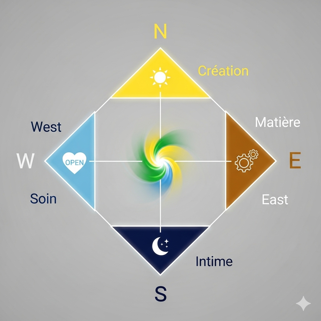 En explorant les quatre directions du losange, nous avons découvert que l'harmonie est la conséquence d'un alignement avec notre être le plus profond. C'est un guide pour vivre en cohérence, en puisant dans la force de la Création, en se nourrissant du Soin, en s'ancrant dans la Matière et en se connectant à son Intime.